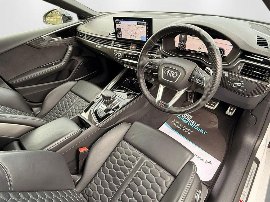 Experience the convenience of the Comfort and Sound Package, which includes keyless entry, a luxury branded sound system, and 360 degree parking assistance. The Audi Side Assist, incorporating Blind Spot Assistance, provides an extra layer of safety when changing lanes. Driving is made easier with the light and rain sensor that automatically activates the headlights, and the advanced Audi Matrix LED headlights with dynamic indicators ensure optimal visibility. The RS5 also offers a surprisingly large boot space, making it practical for everyday use. Its remarkable acceleration, reaching 0-62mph in just 3.9 seconds, clearly sets it apart from other vehicles in its class.