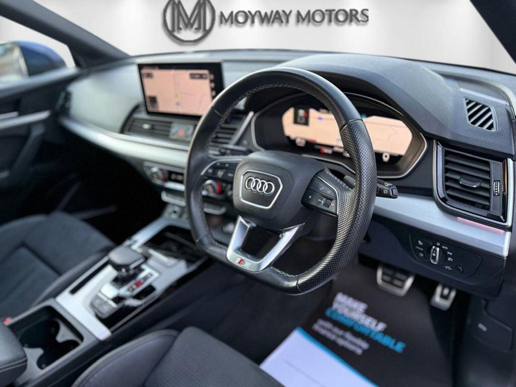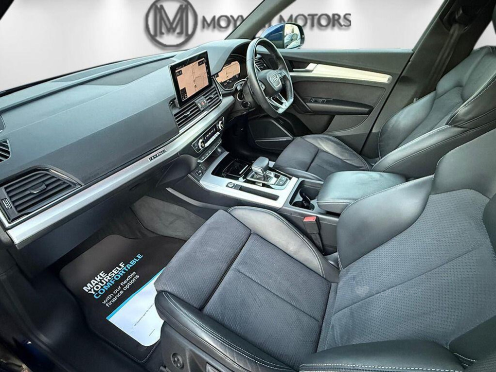 This 2022 Audi Q5 TDI S line is a superb example, having had only one owner since new. This premium SUV boasts a powerful yet efficient 2.0 litre diesel engine, paired with Audi's renowned four wheel drive system for confident handling in all conditions. As a Euro 6 compliant vehicle, it meets stringent emission standards. The S line trim enhances its sporty appeal, and with a generous towing weight of 2400 kg, it's ready for your adventures.