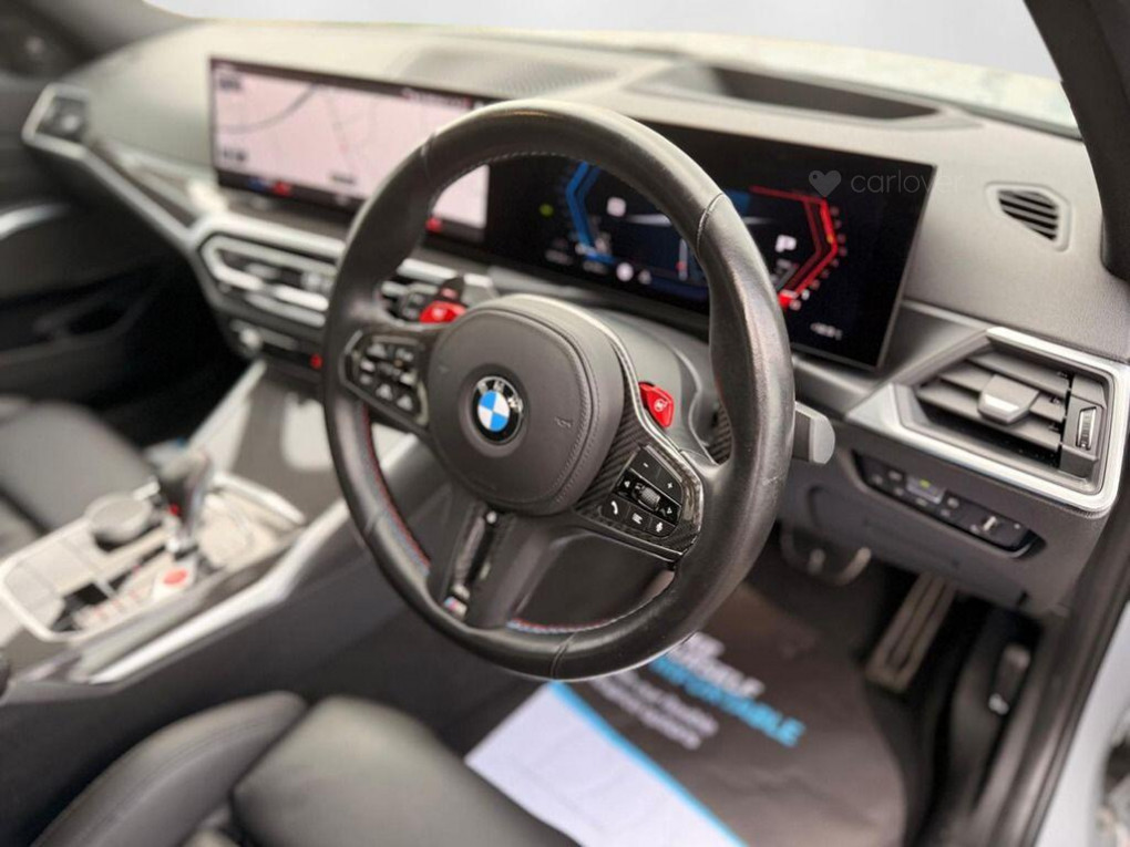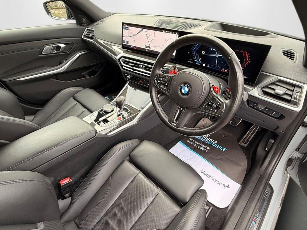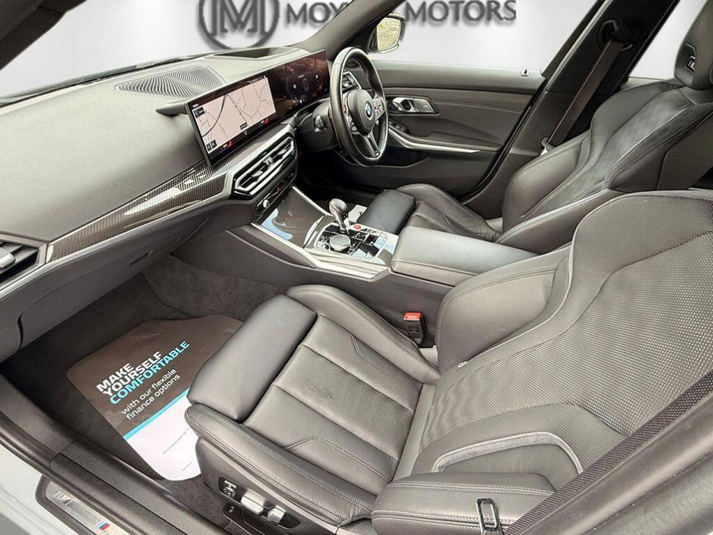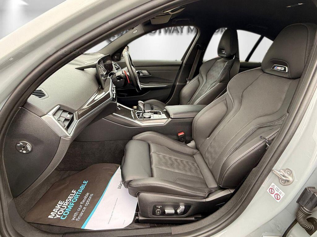 This 2023 BMW M3 BiTurbo Competition presents an exceptional opportunity with its remarkably low mileage of just 13,000 miles. This Euro 6 compliant, 3.0L petrol M3, in Competition trim, boasts a clear vehicle history check, offering peace of mind. It comes equipped with the desirable Technology Plus Pack, enhancing your driving experience with features like adaptive cruise control and a comprehensive 360 degree parking assistance system. Further enhancing its appeal are the striking 19 inch front and 20 inch rear M Double Spoke 826 forged alloy wheels in bicolour black, a heated steering wheel for comfort, and heated front seats.