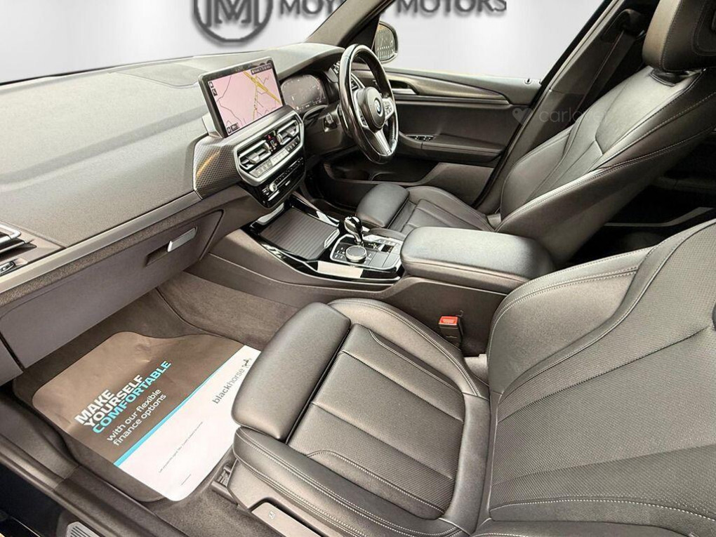 This 2023 BMW X3 20d M Sport boasts a full dealership service history from its single owner, offering peace of mind. This Euro 6 compliant model features a 2.0 litre diesel hybrid engine paired with four wheel drive, ensuring capable performance. The M Sport trim and M Sport Pro Pack enhance its sporty appeal, while the automatic three zone air conditioning provides comfort for all occupants. Navigating tight spaces is made easier with front and rear parking sensors, a reversing camera, and parking assistance features, complemented by adaptive LED headlights for improved visibility.