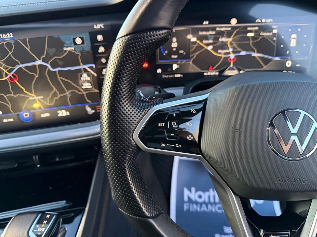 This 2021 Volkswagen Touareg TDI V6 Black Edition boasts a clear vehicle history, offering you peace of mind. This Four Wheel Drive model is powered by a robust 3.0 litre Diesel engine, meeting Euro 6 emission standards. The Black Edition trim enhances its appeal with IQ Light LED Premium Matrix Beam headlights featuring dynamic light assist and indicators, alongside full LED headlights for superior visibility. Convenience is key with keyless entry and ultrasonic parking sensors, both front and rear, which provide optical and audible warnings, further supported by parking assistance systems. Inside, you'll find a luxurious 4Zone climate control system to ensure comfort for all occupants.